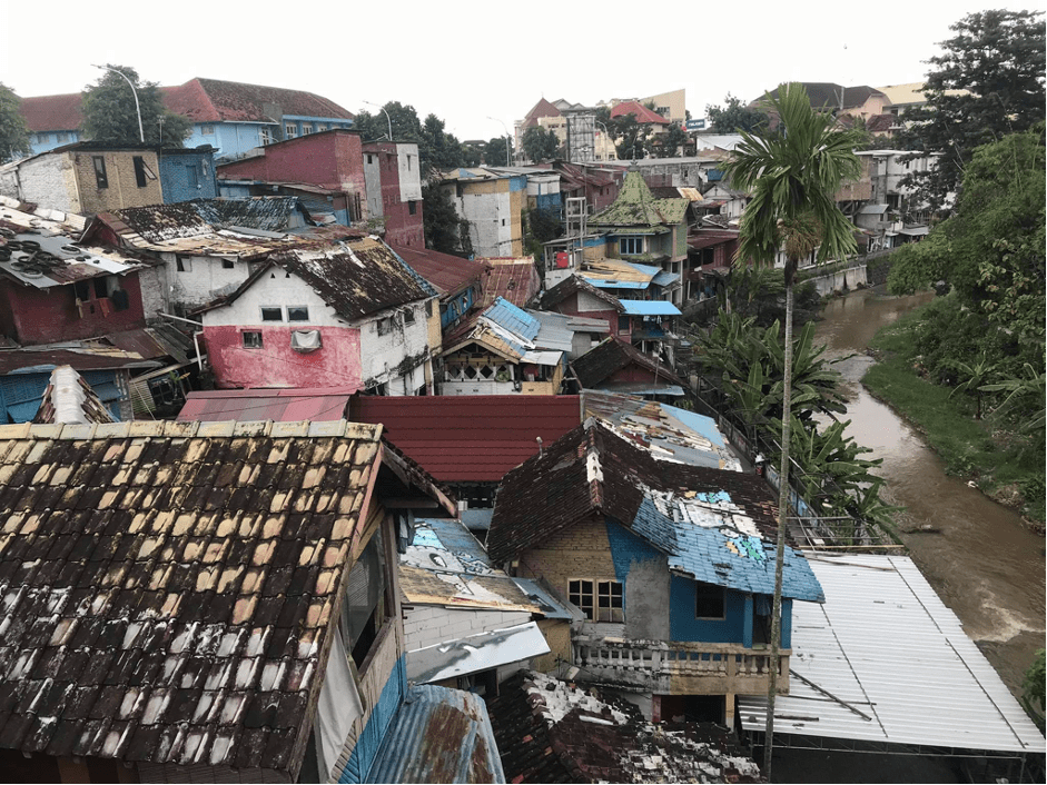 If you are to follow the path of River Code in Yogyakarta and then navigate your way under the Gondolayu Bridge you will come to Kampung Code, a riverbank settlement in Yogyakarta made up of brightly painted houses and murals. This settlement has had a turbulent history. In 1983, the then squatter settlement had been earmarked for eviction and it was through the intervention of Romo Mangun[1], a late priest and architect, that the settlement was saved. Supported by student activists Romo Mangun went on hunger strike to protest the removal of the settlement and used subsequent media coverage to showcase the lives of those living in the settlement (Guinness 2009, p.219). In 1992, he was awarded the Aga Khan award for his upgrading project and design work in kampung Code improving many of the homes. The status of this settlement is now somewhat secure, and the bright houses have been felt as a colourful addition to the city for a while now. However, the threat of evictions has not disappeared from Java. Although there was an attempt by the Sultan of Yogyakarta to reclaim all riverbank land in 2015 (Guinness 2020, p.428). In the same year Jakarta saw violent clashes between the police and residents of ‘illegally’ built homes along the Ciliwung River.
