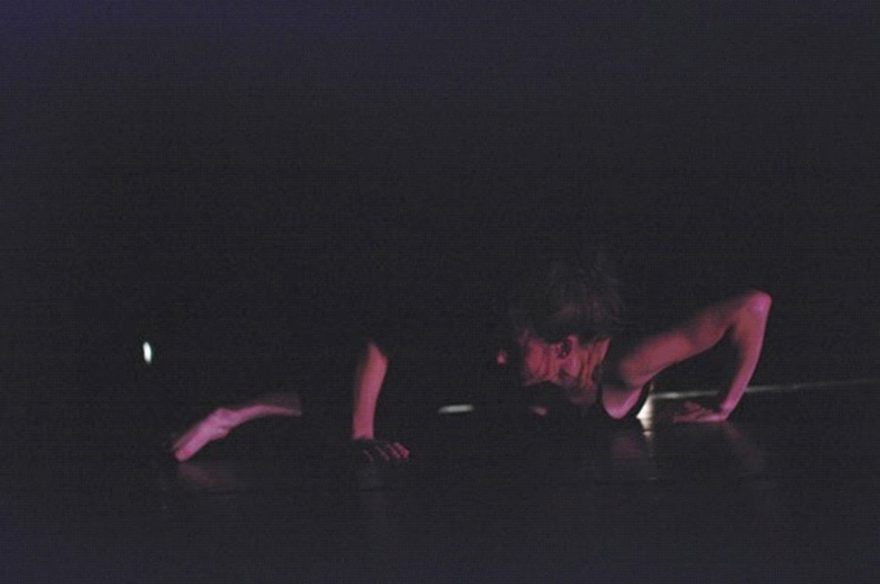 At the end of the fourth section, I shed the clothes to perform ‘crowd body’; a dis-location, collapsing and decaying, striving and interrupting; dancing a letting go of this multiplicity of constructed aspects of self. Like scratching off the infected layers of skin that had become my body through the ‘vulnerable bodies.’ Crowd body is danced until the energy of it exhausts itself. As I reach a point of overcoming my lived objectified pain-filled self, a re-forming occurred. Ending as I had begun, only this time standing, poised and relaxed, empty and yet full of the imprint of the past and the potential of what “I” could now become.