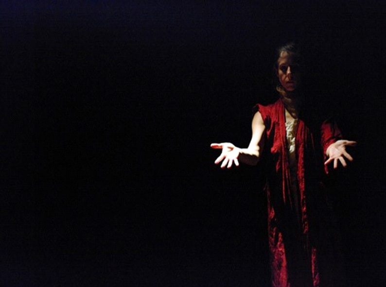 From the dance of exhaustion/exhumation comes ‘the speech.’ After a brief silence or, rather the sound only of breath in the darkness, I open my mouth and spurt out a tirade of toxic language, expressing that which had previously been un-utterable. The initial intensity in vocal tone and content is followed by a soft and eventually disappearing voice-body. Expressing a freedom to speak as ‘it’ then ‘she’ then ‘I’ to become, with everyone in the room, nothing but a collective pause in a dark, silent, communal space.